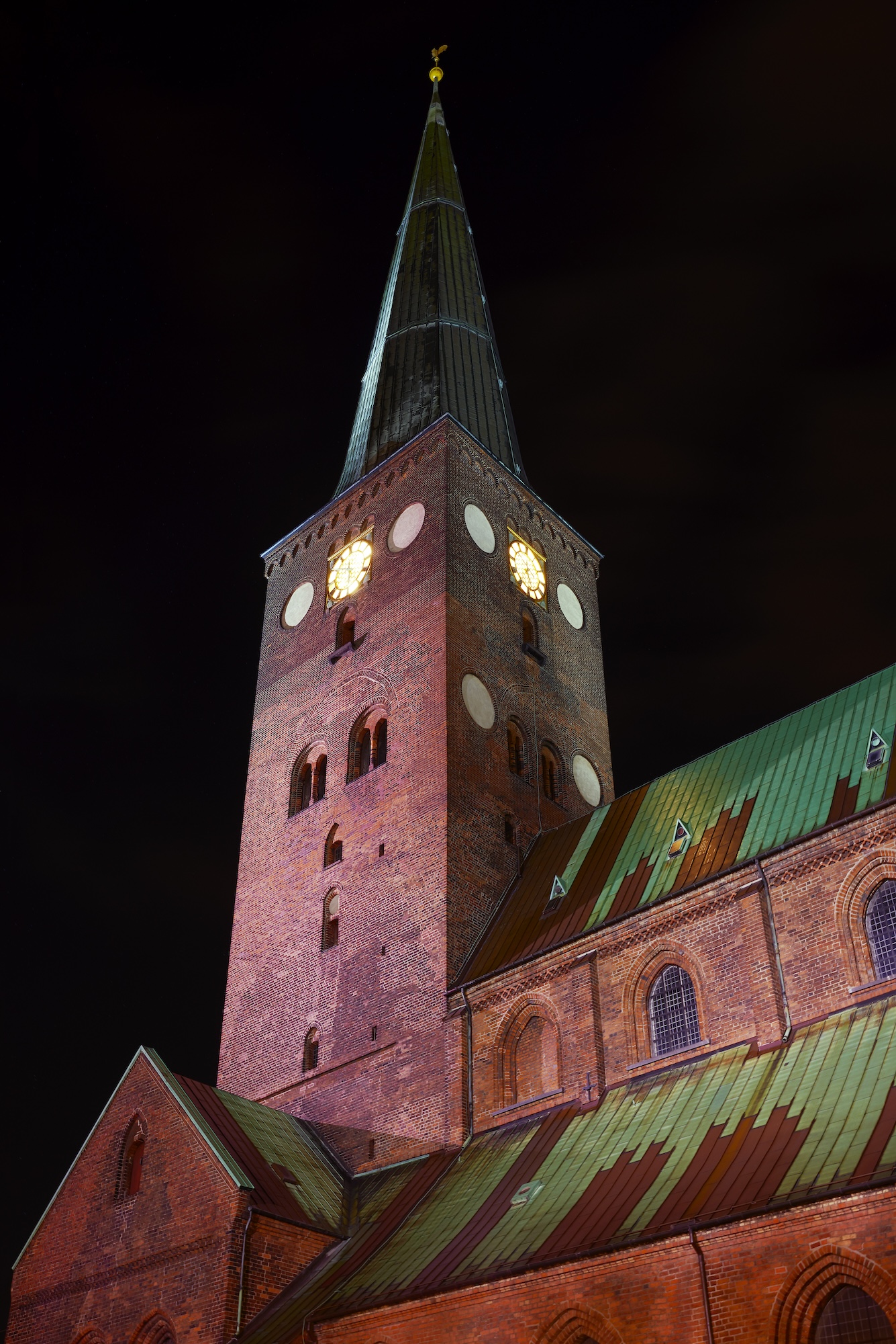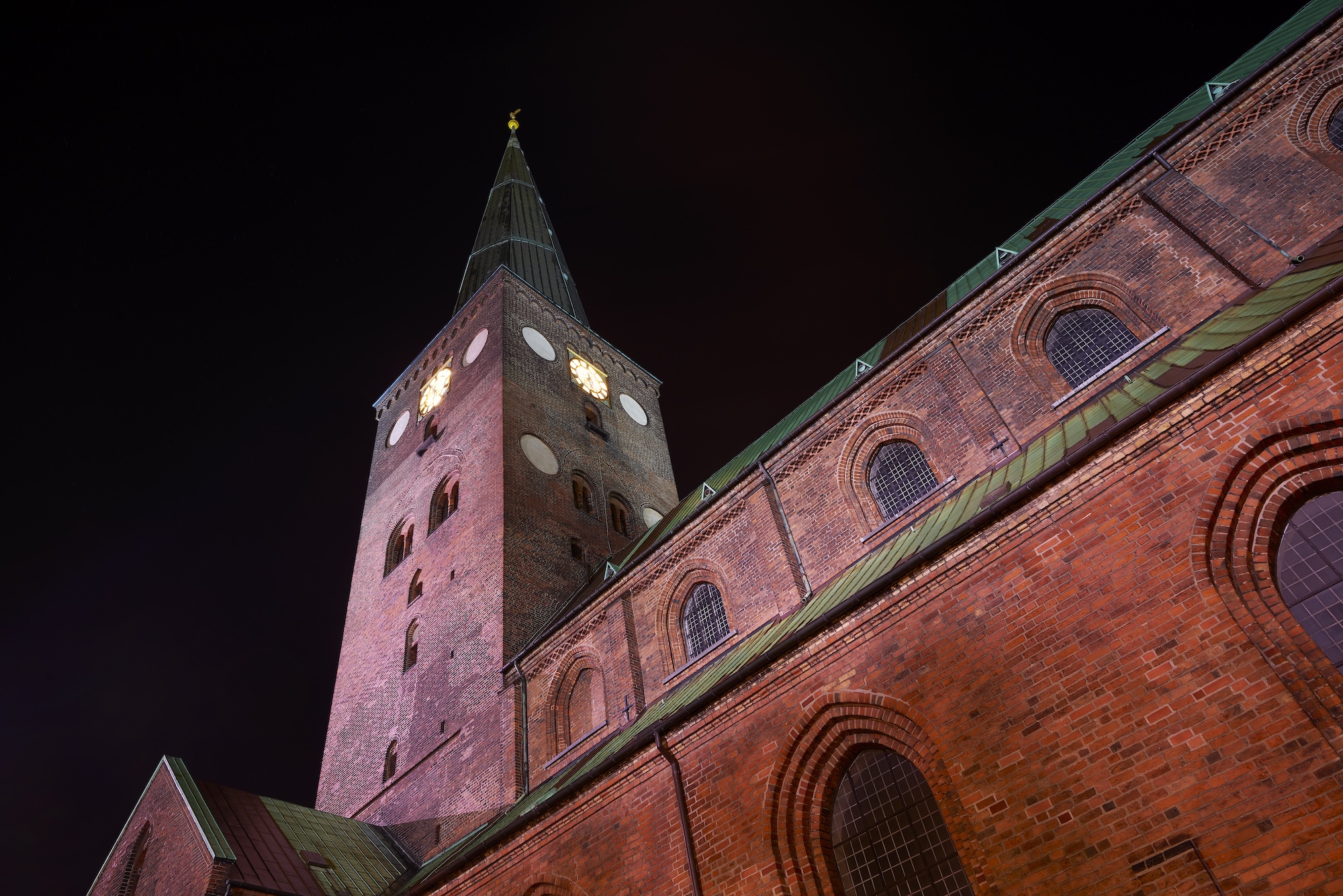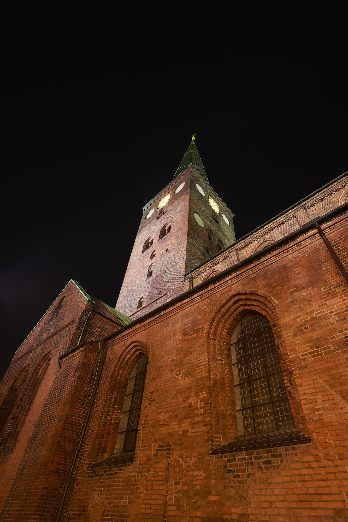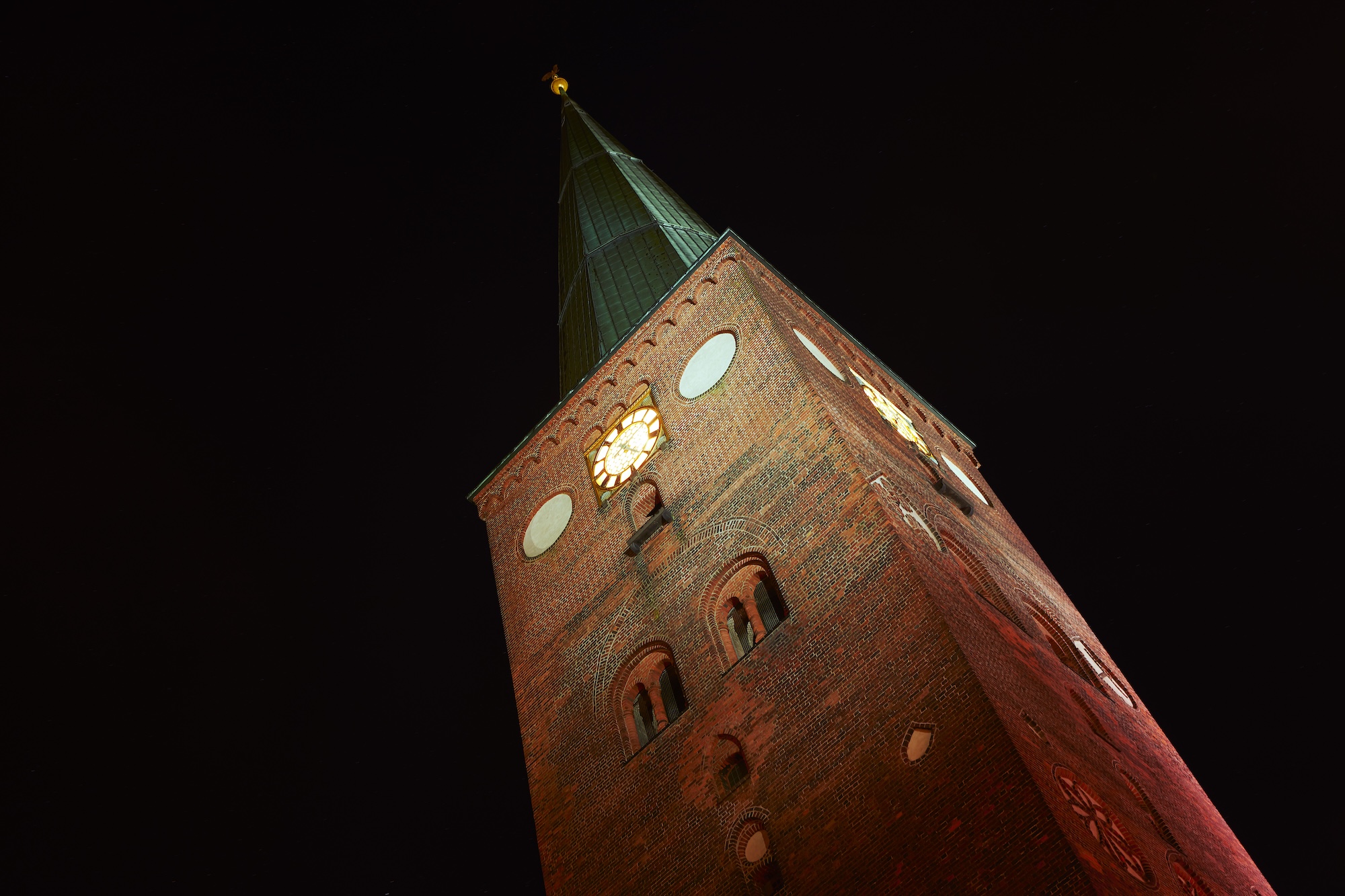 A light installation that architecturally illuminates Aarhus’ iconic cathedral; Aarhus Domkirke. The lighting was designed to very carefully support the vastly varying structure and composition of the cathedral, in a downplayed scenario, as wished for by the ministry. The project was completed in december 2018.
