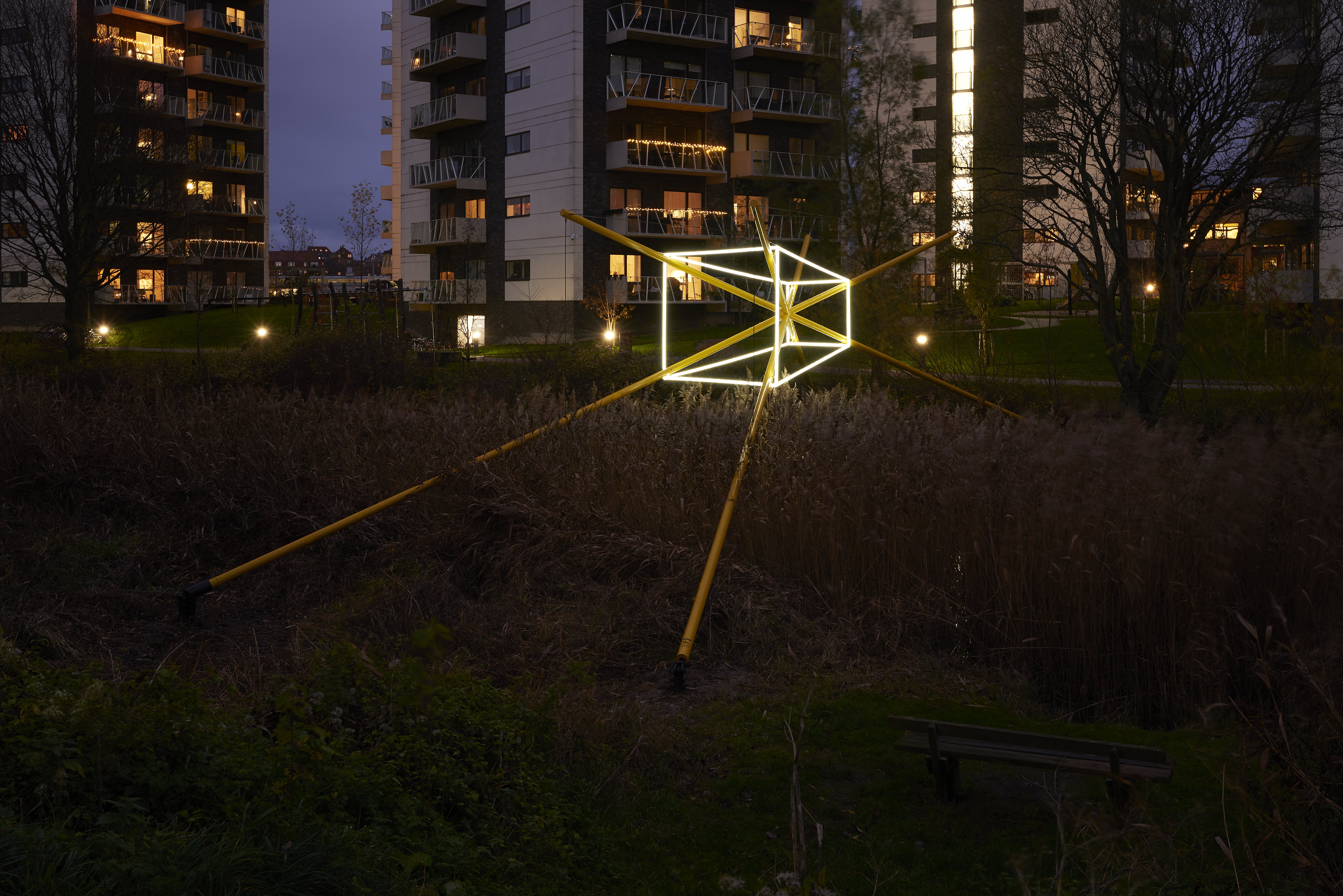 A dynamic public artwork, completed on 9th november 2018, developed by internationally acclaimed artists, for an outstanding natural setting, with numerous international contractors involved in the production and installation. The first project I was involved in, since being hired as head of project, for Lys På Aarhus.